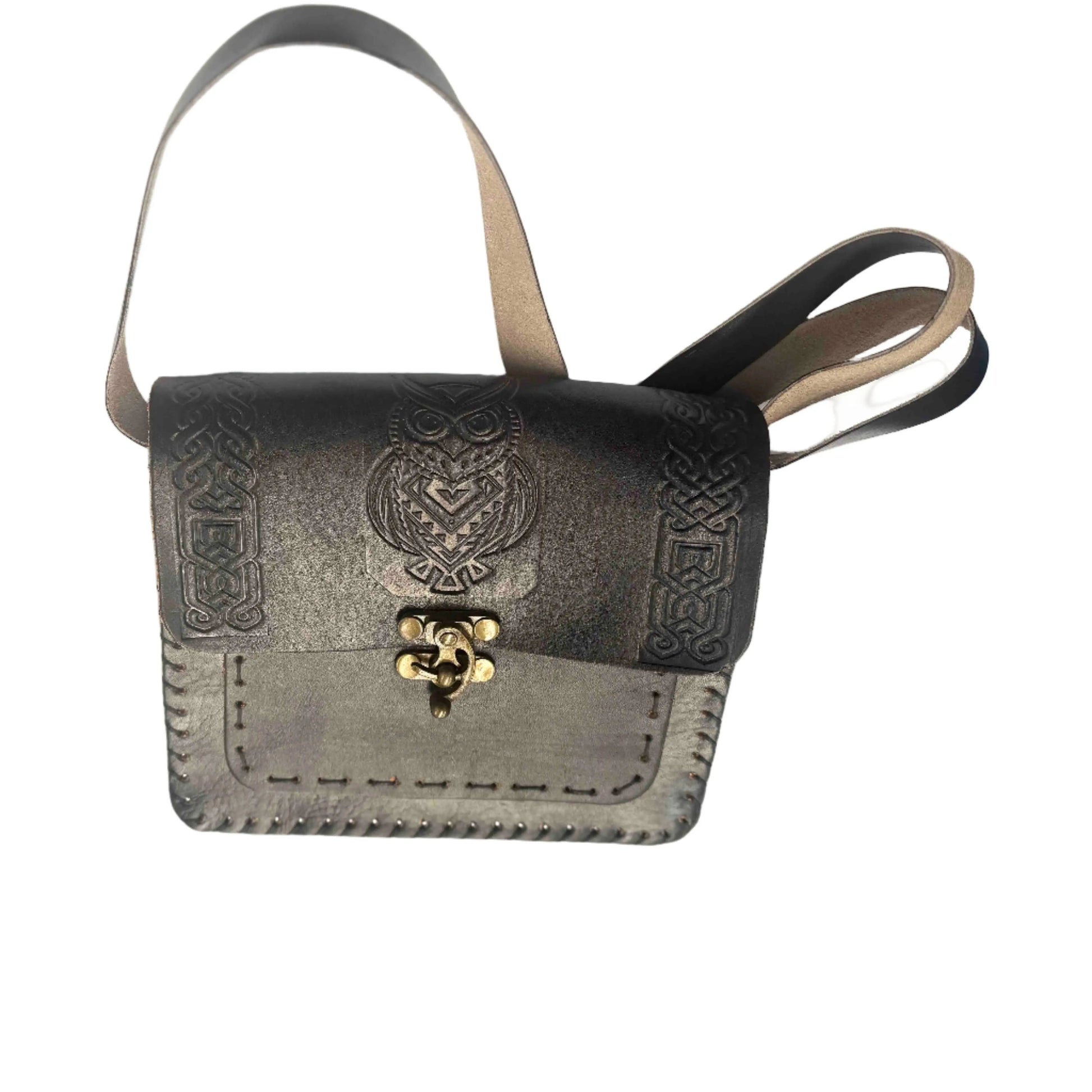 This sturdy Owl Design Leather Bag has 2 compartments and is made of genuine leather with vintage closing latch. It has an adjustable shoulder strap to suit the wearer to be comfortable wearing it over the shoulder or over the shoulder and neck.